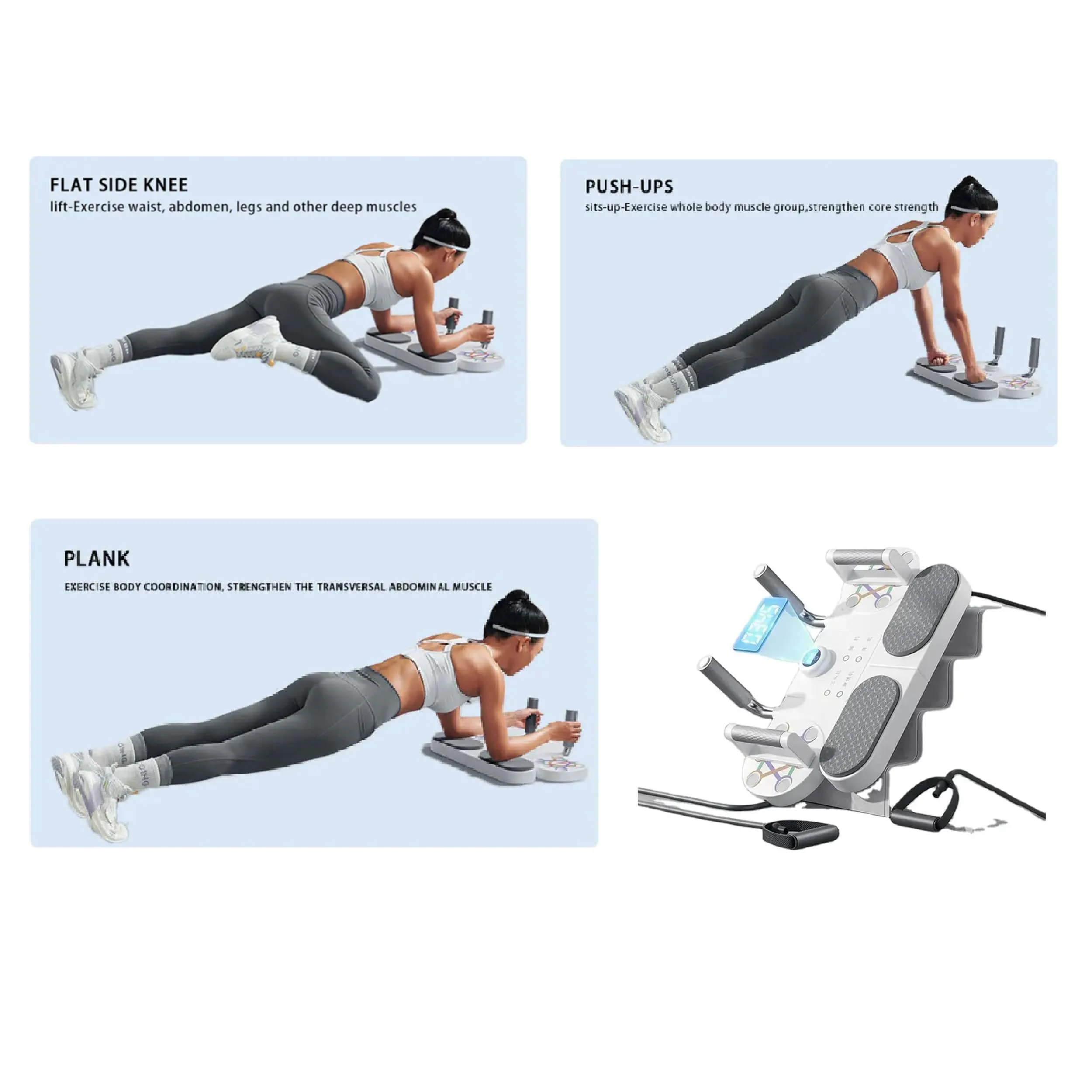 جهاز ميني ستيبر الرياضي لتمارين عضلات البطن بدواسة مانعة للانزلاق واشرطة المقاومة