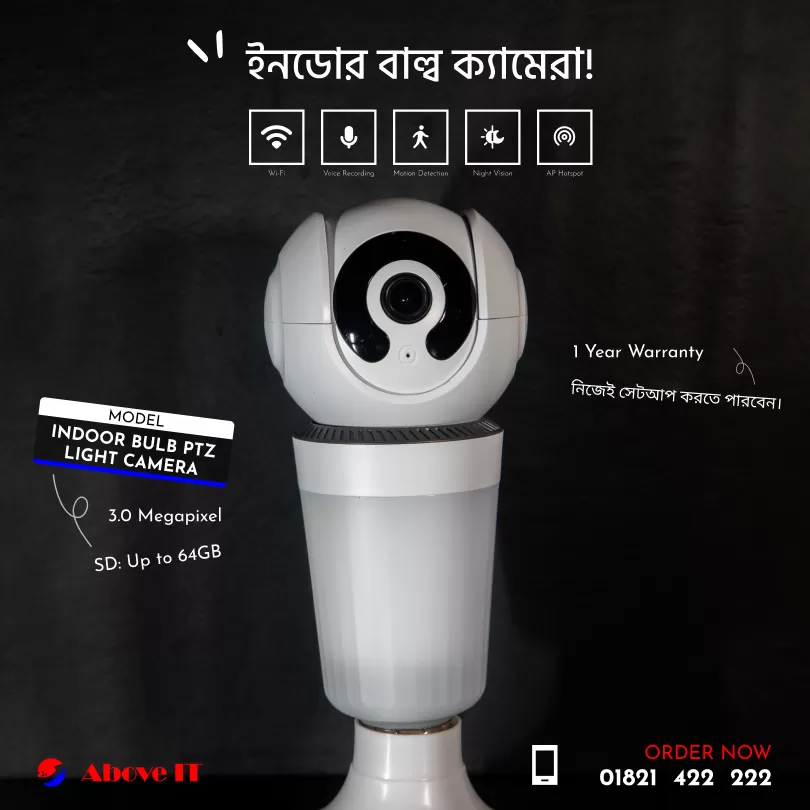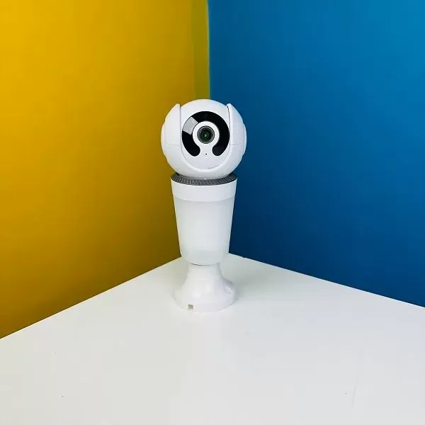 كاميرا V380 Indoor Bulb PTZ Light Wifi IP توفر فيديو عالي الجودة ورؤية ليلية بالأشعة تحت الحمراء للمراقبة الفعّالة.