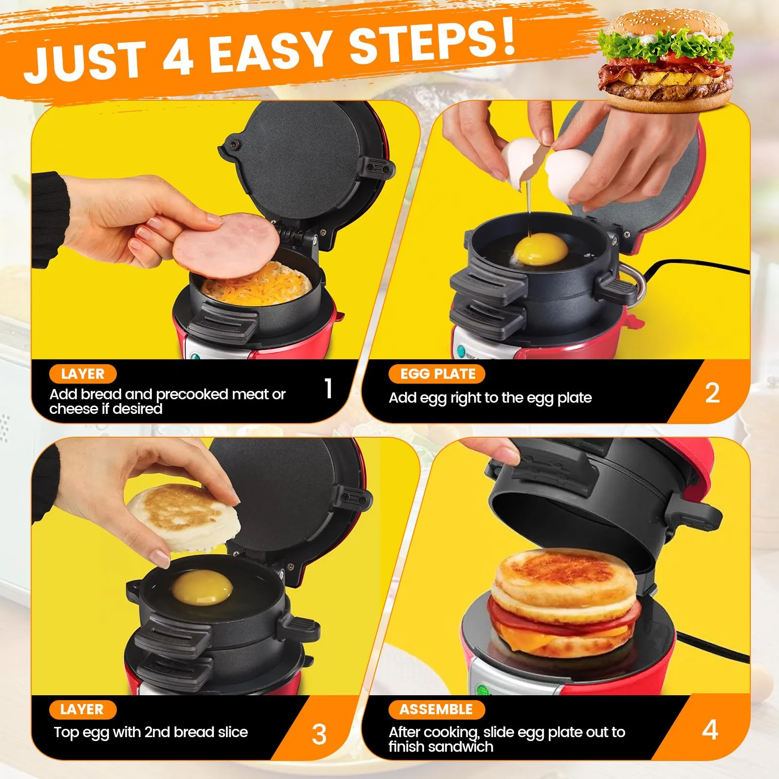 مساعد جيد للمطبخ: يسمح لك بحصاد 1 شطيرة غنية / هامبرغر في بضع دقائق فقط.