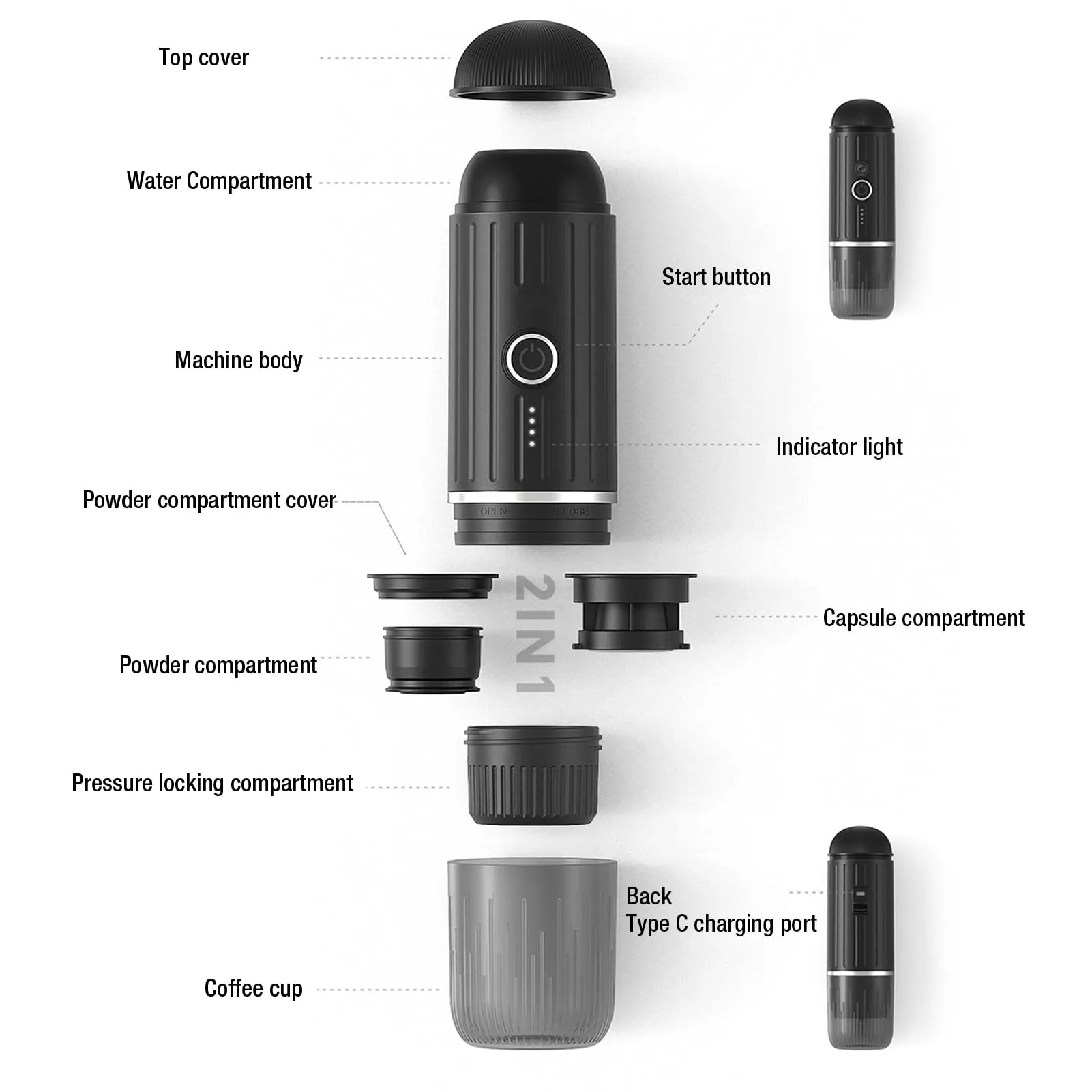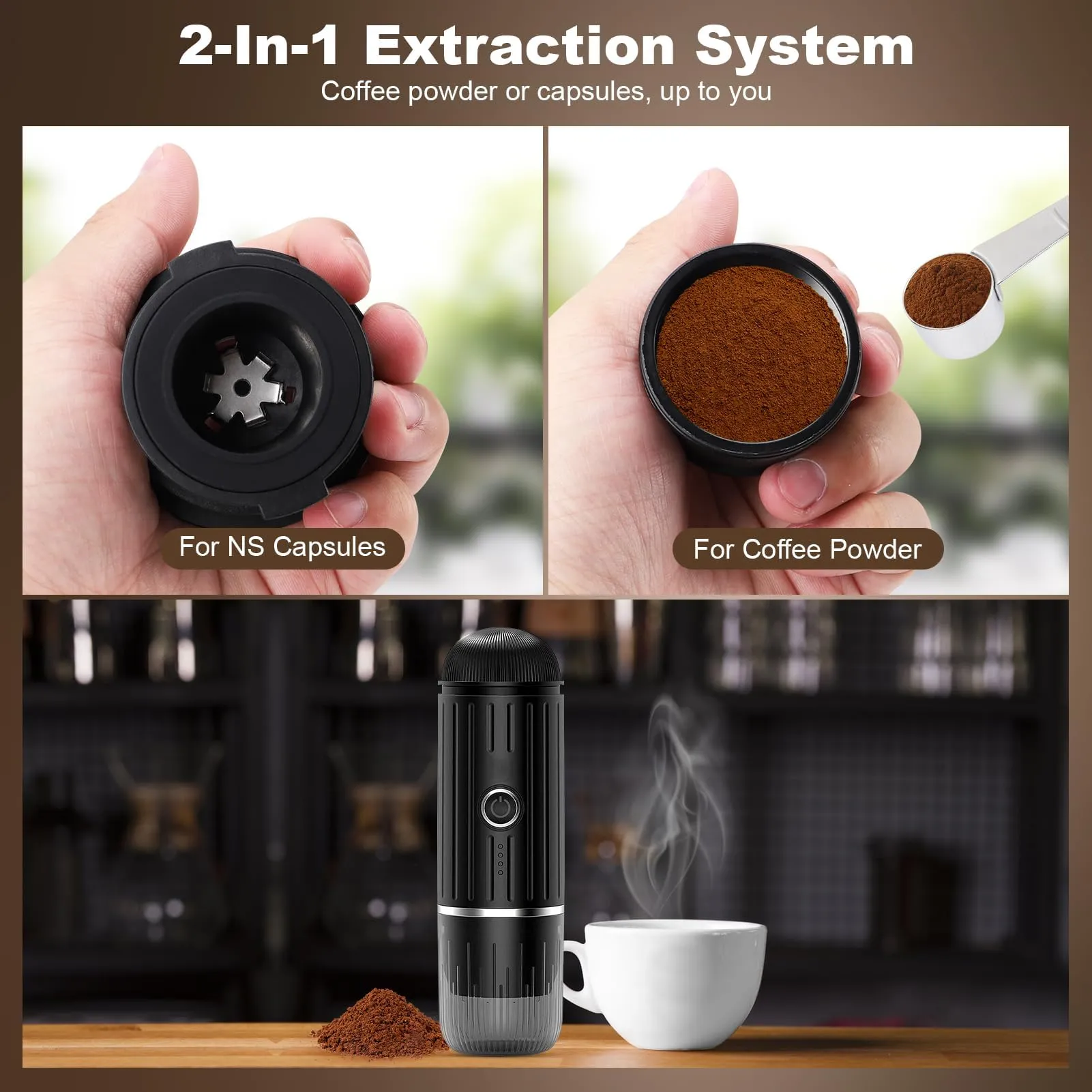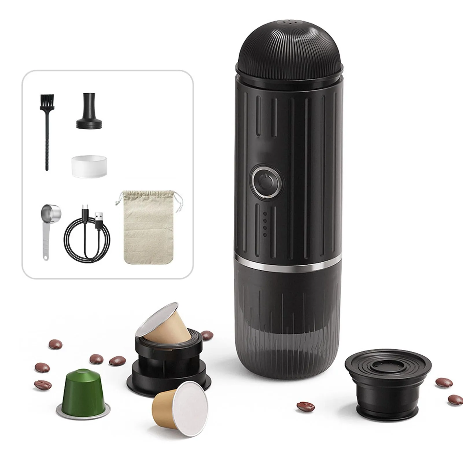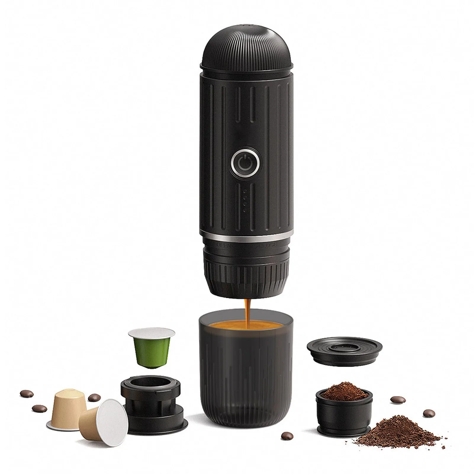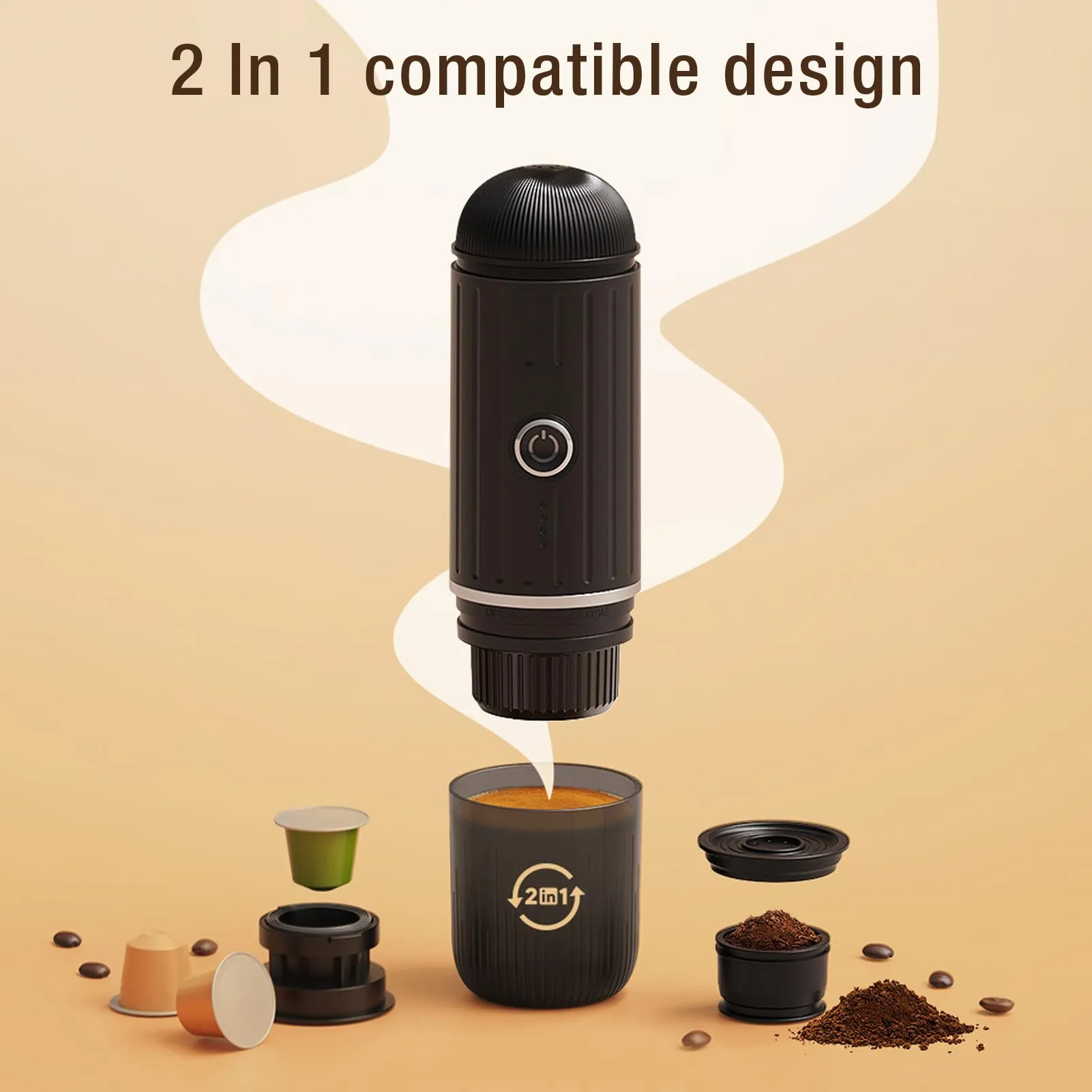 تصميم أنيق ومتين بقدرة استخلاص عالية، تدعم الاستخدام المزدوج سواء بكبسولات Nespresso Original أو البن المطحون، مما يجعلها مثالية للمنزل، المكتب، أو أثناء السفر.