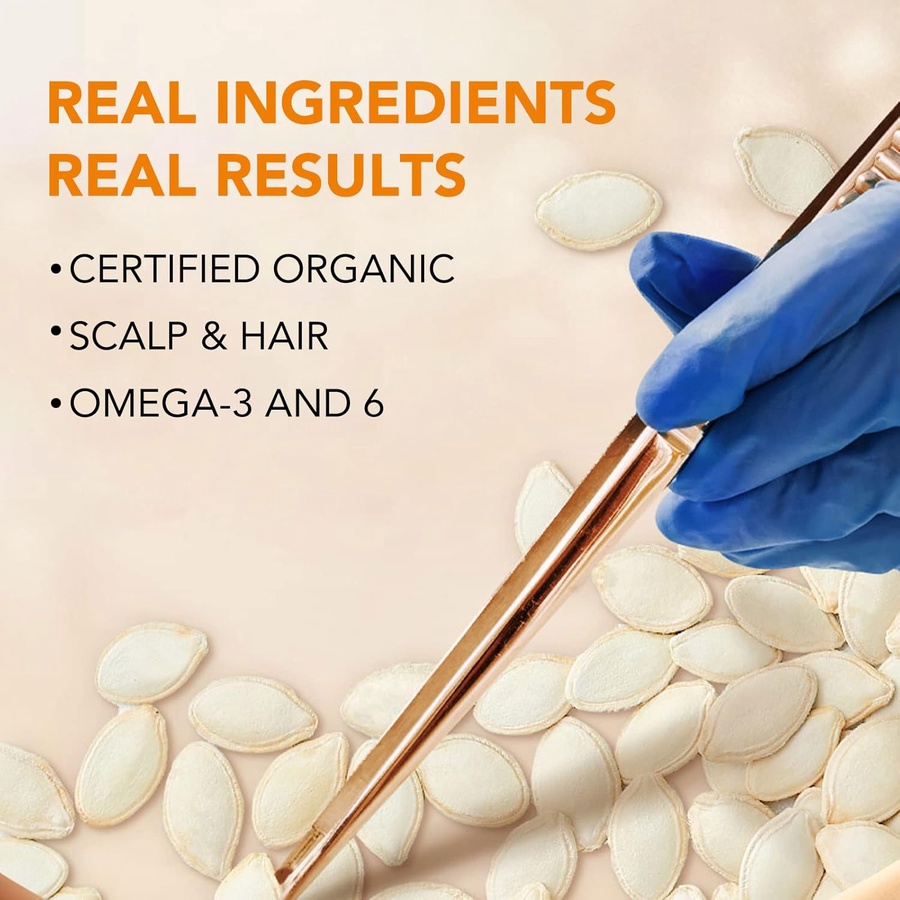 زيت بذور اليقطين المضغوط على البارد زيت طبيعي خالي من المواد الكيميائية المضافة يحتوي على بذور اليقطين ويدعم الدورة الدموية الطبيعية والآمنة لفروة الرأس