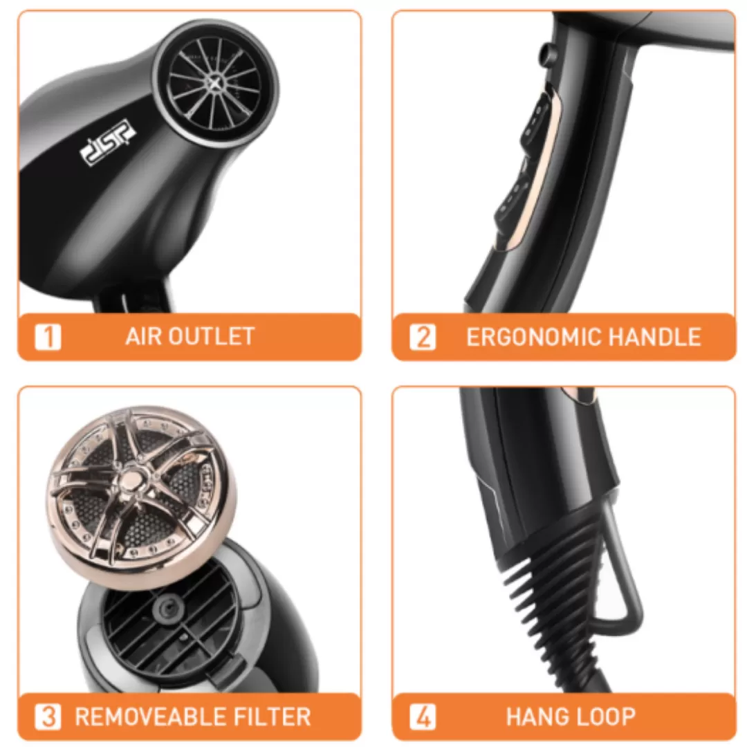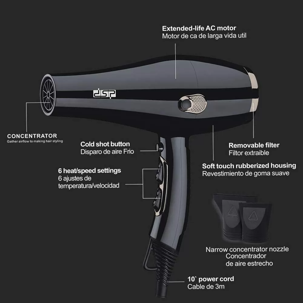 يأتي مزودًا بإعدادات حرارة وسرعة متعددة لتلبية جميع احتياجاتك، من التجفيف السريع إلى الفرد المثالي.
