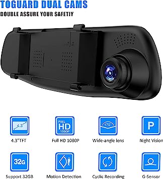 - تمتاز بعدسة أمامية وخلفية لتوفير تغطية شاملة للسيارة. شاشة 3 إنش تعرض بوضوح مقاطع الفيديو.