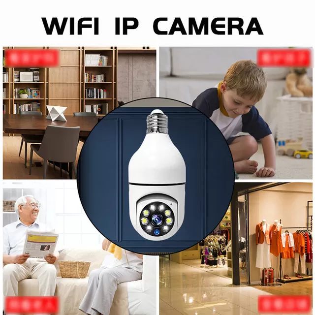 كاميرا مراقبة على شكل لمبة- لاسيلكية وتدعم الصوت ثنائي الإتجاه وكشف ذكي للحركة والتحكم بها عن طريق الجوال (واي فاي)