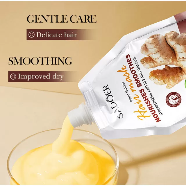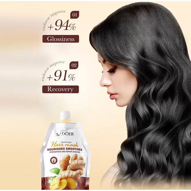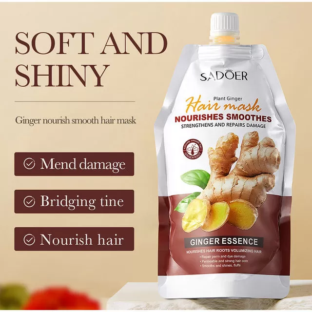 قناع غني بخلاصة الزنجبيل الطبيعية مصمم لترطيب الشعر بعمق، علاج الجفاف، والتقصف، ومنح الخصلات مرونة ولمعان يدوم أيام. مثالي للشعر المصبوغ، الجاف، أو المتضرر من التصفيف الحراري.