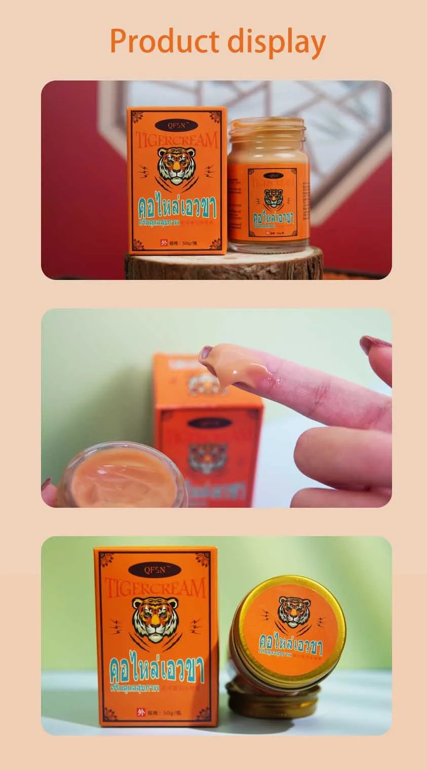 راحة موضعية سريعة… لكل يوم نشيط في الإمارات.” مرهم عشبي 50 جم (Tiger Balm*) يمنحك إحساسًا دافئًا/منعشًا تلطيف شدّ العضلات وإجهاد المفاصل بعد العمل أو التمرين. 1️⃣المميزات ● مفعول موضعي سريع يمنح إحساس دفء/برودة يهدّئ مناطق الانشداد والتصلّب. ● تركيبة عشبية عطرية. ● سهلة الامتصاص ولا تترك أثرًا مزعجًا عند الاستخدام الصحيح. ● استخدام موجّه للمناطق المجهدة: الرقبة، الأكتاف، أسفل الظهر، الركب، والذراعين. ● مفيد قبل/بعد التمرين للمساعدة في الإحماء أو الاسترخاء بعد مجهود. ● رائحة مهدّئة بالأعشاب تساعد على الاسترخاء أثناء التدليك. ● عبوة 50 جم عملية تكفي لفترة وتناسب الحقيبة/السيارة. ________________________________________ التفاصيل السريعة ● النوع: مرهم عشبي موضعي لتلطيف شدّ العضلات وإجهاد المفاصل. ● السعة: 50 جم. ● المكوّنات الفعّالة المعتادة: منتول، كافور + زيوت عطرية عشبية. ● طريقة الاستخدام: يُدلّك مقدار صغير على المنطقة حتى الامتصاص؛ يُعاد عند الحاجة مع مراعاة فواصل زمنية. ● التخزين: في مكان بارد وجاف بعيدًا عن الشمس المباشرة.