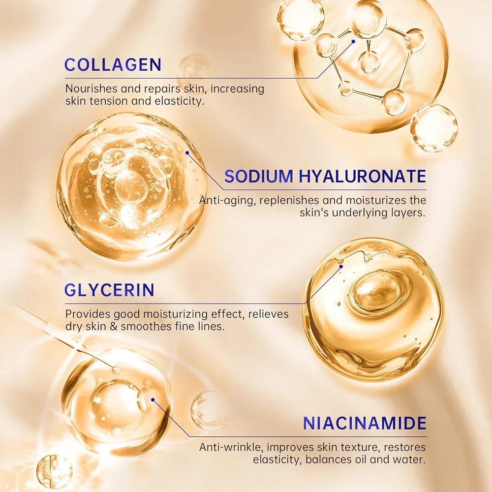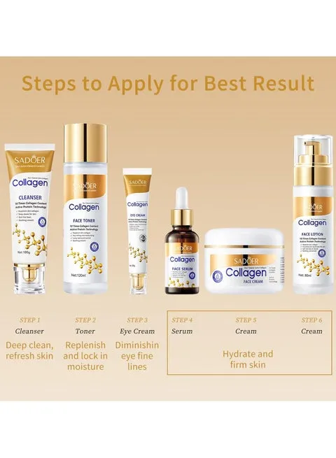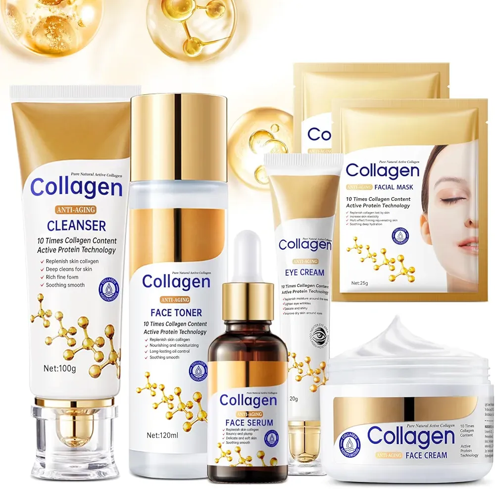 مجموعة العناية بالبشرة بالكولاجين هي نظام متكامل مصمم لدعم نضارة البشرة وتحسين مظهرها من خلال روتين يومي متكامل يجمع بين التنظيف، الترطيب، والتغذية المكثفة. تعتمد المجموعة على تركيبة مدعمة بالكولاجين للمساعدة في تعزيز مرونة البشرة ومنحها مظهرًا أكثر إشراقًا وحيوية.
