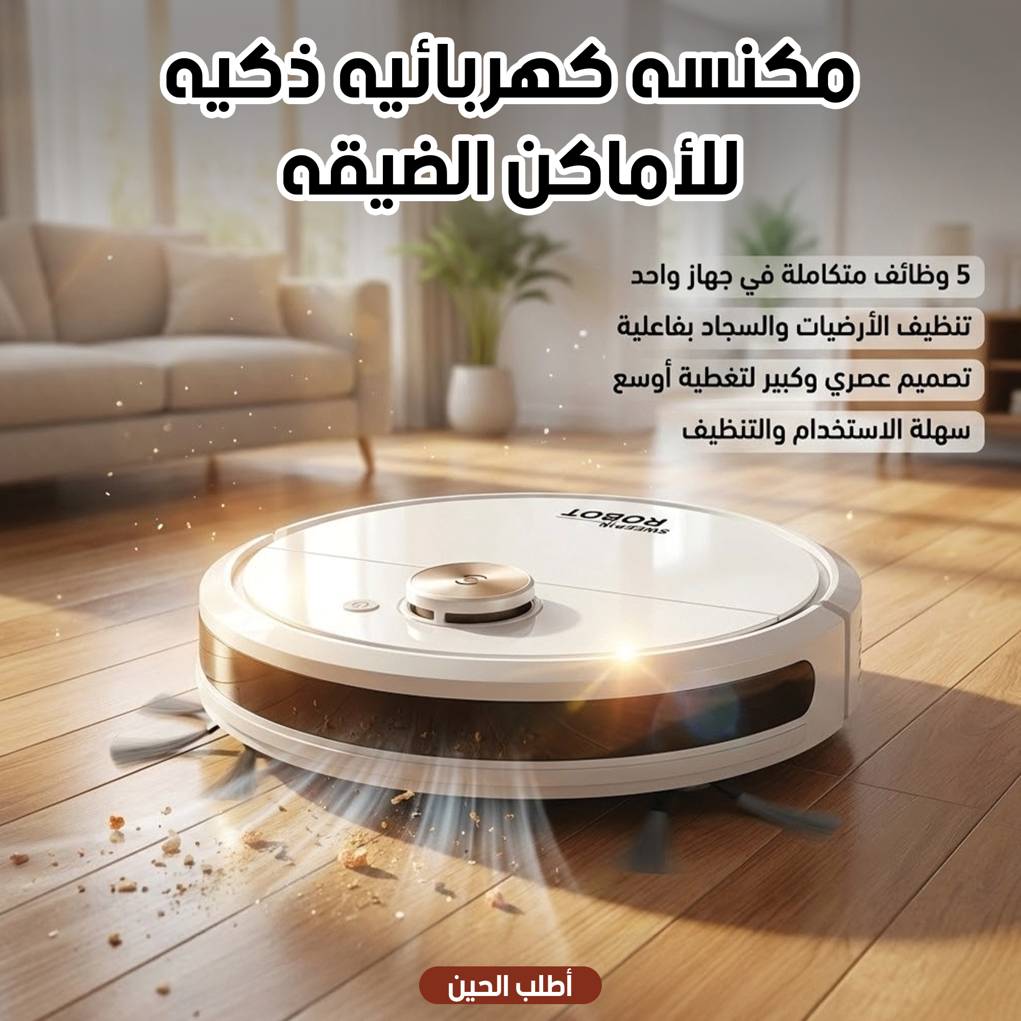 مكنسة كهربائية ذكية 5 في 1 ⭐ هوك: "تبي بيتك نظيف بدون تعب؟ هالمكنسة الصغيرة… تسوّي شغل الكبيرة!" 🤖 مكنسة كهربائية ذكية 5 في 1 – حجم صغير… أداء كبير تكنس، تشفط، وتمسح الأرض بنفس الوقت! المثالية حق الأماكن الضيقة والزوايا اللي ما توصلها المكنسة العادية. 🟢 Selling Point – ليش كل الناس تحبها؟ صغيرة الحجم ومثالية للأماكن الضيقة تدخل تحت السرير، الكنبة، الطاولات… وتجمع كل الغبار. تنظيف 5 في 1: ✔ تكنيس ✔ شفط ✔ مسح ✔ تجميع الغبار ✔ وصول للزوايا بسهولة زر واحد للتشغيل — تشغيل سريع بدون أي تعقيد. قوة شفط ممتازة تشيل الغبار والشعر والفتافيت بسهولة. خفيفة وسهلة التنقل — حتى الأطفال يقدرون يستخدمونها. 📏 Specs – المواصفات: القطر: 15 سم الارتفاع: 5 سم صديقة للبيت، ما تطلع صوت مزعج مناسبة للباركيه، السيراميك، السجاد الخفيف 🎯 شنو تفرق عن غيرها؟ رغم حجمها الصغير… تشتغل مثل روبوت تنظيف كبير، وسعرها خفيف على الميزانية! مثالية للغرف الصغيرة، المكاتب، الشاليهات، وللي عندهم أطفال أو حيوانات أليفة. 🔥 Call to Action: "احجزيها الحين… وخلي بيتك يلمع بدون ما ترفعين إصبع!" ✨🤍