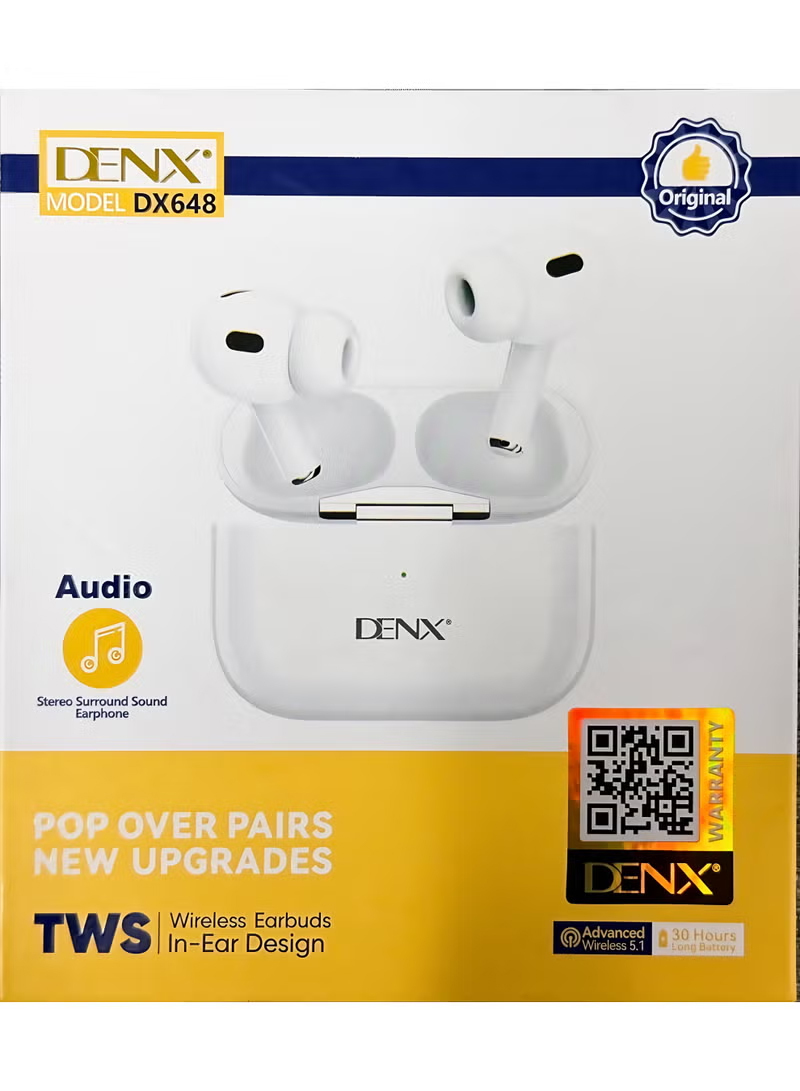 🎧 سماعة Denx DX648 الأصلية – صوت نقي وأداء خرافي 🔥 ✨ المميزات الأساسية: 🔹 صوت محيطي ستيريو بجودة عالية لتجربة استماع مميزة 🔹 بلوتوث 5.1 لتوصيل سريع وثابت بدون تقطيع 🔹 عزل ضوضاء ذكي (ANC) لتستمتع بصوت نقي حتى في الأماكن المزدحمة 🔹 بطارية قوية تدوم حتى 25 ساعة مع العلبة 🔹 لمس للتحكم – بدّل الأغاني، رد على المكالمات بلمسة واحدة 🔹 تصميم مريح In-Ear يثبت بالأذن بدون تعب ⚡ المواصفات التقنية: الشحن السريع عبر العلبة (180mAh) وقت الاستماع: حتى 5 ساعات متواصلة وقت الانتظار: حتى 30 ساعة دعم الأجهزة: موبايل – تابلت – لابتوب اللون: أبيض أنيق 🛡️ الضمان: 📅 ضمان لمدة عام كامل 💥 Denx DX648 – سماعة بتكنولوجيا متقدمة وصوت يخليك تعيش التجربة بوضوح تام 🎶 🟢 اطلبها الحين وخليك دايمًا متصل بصوت المستقبل!