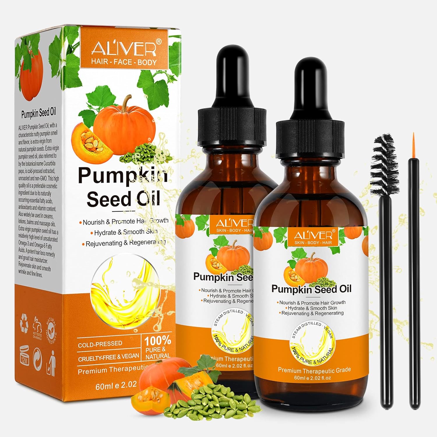 • زيت شعر بذور اليقطين يحفز الدورة الدموية لفروة الرأس، يعزز نمو الشعر، زيت بذور اليقطين المعصور على البارد لتدليك الجسم والرموش والحواجب - 60 مل • زيت بذور اليقطين - 60 مل زيت بذور اليقطين هو زيت ناقل مع مضادات الأكسدة مثل حمض اللينوليك وفيتامين سي وفيتامين اي، وهو جيد للعناية بالشعر والعناية بالبشرة والعناية بالأظافر. • 🔴🔴 زيت بذور اليقطين المضغوط على البارد - زيت بذور اليقطين المعصور على البارد طبيعي وخالي من المواد الكيميائية المضافة. يحتوي على بذور اليقطين ويمكنه دعم الدورة الدموية الطبيعية والآمنة لفروة الرأس. • يدعم إعادة نمو الشعر - مع الزيوت الأخرى ويوضع على فروة الرأس. عند تدليك زيت بذور اليقطين الخاص بنا على فروة الرأس، يمكن أن يساعد على ترطيب فروة الرأس وتغذية الشعر. يحتوي على فيتامين سي وفيتامينات بي وفيتامين اي والنحاس والزنك التي تدعم العناية بالشعر وإعادة نمو الشعر. • زيت بذور اليقطين لتلميع الشعر - زيت بذور اليقطين هذا رائع أيضًا لتعزيز لمعان شعرك. يمكنك إضافة بضع قطرات إلى الشامبو أو ببساطة استخدامه كزيت ناقل للعناية بالشعر. • جيد للأظافر والبشرة - إذا كنت ترغب في نمو أظافر صحية ولامعة، يمكنك وضع زيت اليقطين على أظافرك. يمتص زيت بذور اليقطين بسهولة في البشرة ويخترق بعمق لتهدئة وتنعيم البشرة مع وجود تأثير مرطب جيد على البشرة.